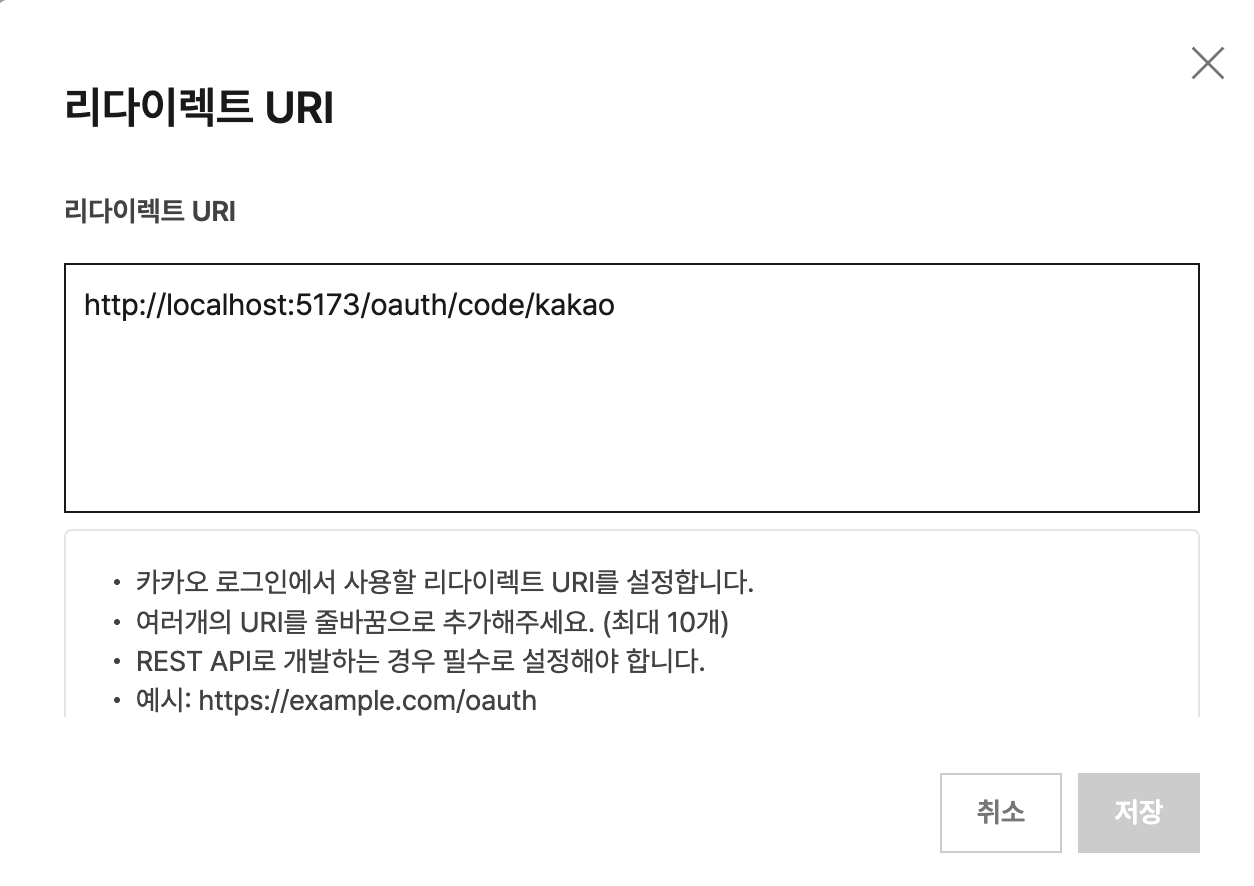 ๋ฆฌ๋ค์ด๋ ํธ URI๋ ์ ์ ๊ฒ๊ณผ ๋ค๋ฅด๊ฒ ์ค์ ํด๋ ๋ฌด๊ดํ๋ค. ๋ค๋ง ์์๋ฅผ ๋ณด๊ณ /oauth๋ฅผ ์ ์ด์ค์ผํ๋ค.
