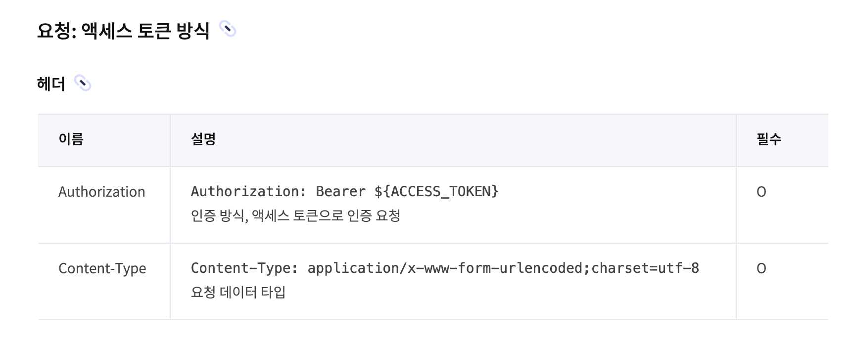 카카오에서 정해둔 규칙을 보면 헤더에 Authorization: Bearer을 담으라고 되어있다. Authorization은 HTTP 요청에 클라이언트의 신원(권한 증명)을 붙이는 표준 헤더이다. 그리고 Authorization에 대표 스킴들 중 하나가 Bearer이다.
