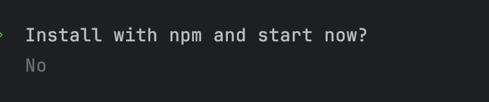 โก Install with npm and start now?์์ [ No ]๋ฅผ ์ ํํ๋ค.