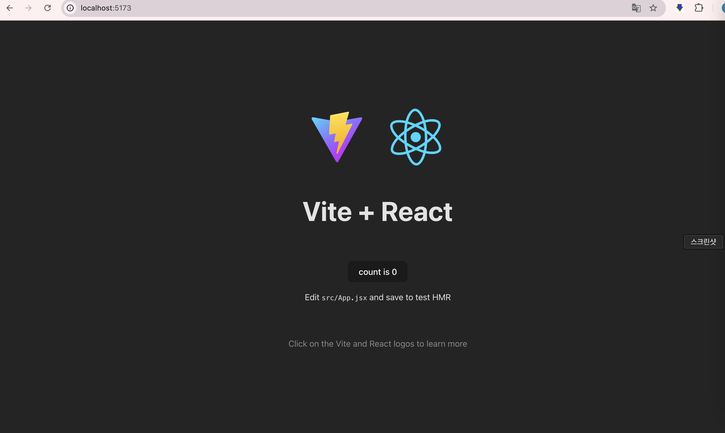 ํ๋ฉด์ ์ดํด๋ณด๋ฉด, Vite์ React ์์ด์ฝ ์ด๋ฏธ์ง๊ฐ ์๋ค. ์ด๋ React ์์ด์ฝ ์ด๋ฏธ์ง๋ ๋น๊ธ๋น๊ธ ํ์ ํ๋ค. ๊ทธ๋ฆฌ๊ณ count is 0 ๋ฒํผ์ ๋๋ฅด๋ฉด 0์ด ์ ์ ์ฌ๋ผ๊ฐ๋ ๊ฑธ ๋ณผ ์ ์๋ค.