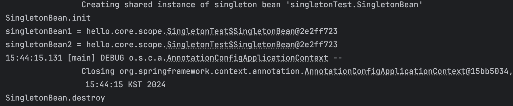 ํ๋กํ ํ์ ๋น์ ์ธ์คํด์ค๊ฐ ๋ค๋ฅด๊ฒ ์์ฒญ๋ ๊ฒ์ ๋ณผ ์ ์๋ค. ์ฑ๊ธํค ๋น ์ค์ฝํ๋ ์ฒ์๋ถํฐ ๋๊น์ง ์ ์ง๋์ง๋ง ํ๋กํ ํ์ ์ ์์กด๊ด๊ณ ์ฃผ์ ๊ณผ ์ด๊ธฐํ(Prototype.init 2๋ฒ ์์ฒญ๋ ๊ฒ์ ๋ณด๋ฉด)๊น์ง๋ง ๊ด์ฌํ๋ค. ๊ทธ๋ ๊ธฐ์ Predestroy ๋ฉ์๋๋ ์คํ๋์ง ์๋๋ค. (ํ์ฌ ์คํ ๊ฒฐ๊ณผ์์ Prototype.destroy๊ฐ ์์ง๋ง, ๋ฐ๋ก ์ฝ๋์ prototypeBean1.destroy();๋ฅผ ์ ์ด์ ๊ทธ๋ฐ๊ฒ์ด๋ค.)