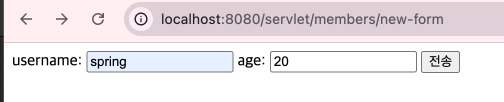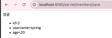 request๋ฅผ ํตํด username๊ณผ age์ ์ ๋ณด๋ฅผ ๊ฐ์ ธ์จ๋ค. ๊ทธ๋ฐ๋ฐ getParameter๋ ๋ฌธ์์ด๋ก ๋ฐ์์ค๊ธฐ ๋๋ฌธ์ ์ ์ํ์ธ age๋ Integer.parseInt๋ก ๋ฌธ์์ด๋ก ๋ฐ์์จ ๊ฐ์ ์ ์ํ์ผ๋ก ๋ฐ๊ฟ age์ ๋ฃ๋๋ค. ๊ทธ๋ ๊ฒ ๋ฐ์์จ ๋ฐ์ดํฐ๋ฅผ member์ ๋ฃ์ ํ save ๋ฉ์๋๋ก store์ ์ ์ฅํ๋ค.