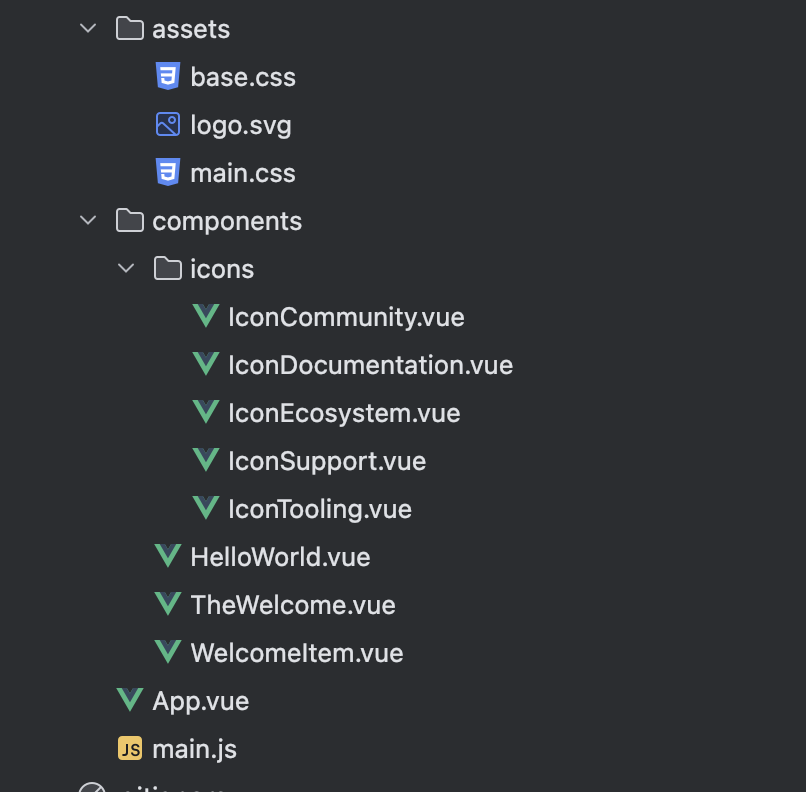 icons ๋๋ ํ ๋ฆฌ ์์ด๊ณ , components์ ๋ค์ด์๋ vueํ์ผ๋ ์์ด๋ค.