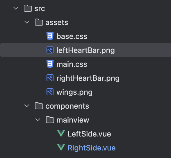 main-view์ ํํธ ์์ด์ฝ์ ์ด๋ฏธ์ง๋ก ๋ฑ๋กํ๋ค. src์ ๊ฒฝ๋ก๋ฅผ ์ ์๋ค. ํด๋น ์ด๋ฏธ์ง ๊ฒฝ๋ก๋ src ๋๋ ํ ๋ฆฌ ์์ ์๋ assets ๋๋ ํ ๋ฆฌ์ ํด๋น ์ด๋ฏธ์ง๊ฐ ์๋ค. "@/assets/leftHearBar.png"๋ผ๊ณ ํด๋ ๊ด์ฐฎ๊ณ , "../assets/leftHeartBar.png"๋ผ๊ณ ํด๋ ์ข๋ค. alt๋ ๊ตณ์ด ์ ์ง ์์๋ ๊ด์ฐฎ๋ค. ํด๋น ํ์ผ์ ๋ถ๋ฌ์ฌ ์ ์์ ๋ ํ ์คํธ๋ก ๋์ฒดํ๋ ์ญํ ์ ํ๋๋ฐ, ๊นจ์ง ํ์ผ์ด ์ด๋ค ์ด๋ฏธ์ง์๋์ง ์๊ธฐ ์ฝ๊ฒ ํด์ฃผ์ง๋ง ์ ์ง ์์๋ ์ฝ๋๋ฅผ ์คํ์ํค๋๋ฐ ๋ฌธ์ ๋ ์๋ค. right-sideBar ํด๋์ค์๋ ์์น๊ฐ์ด ๋ค์ด๊ฐ ๊ฒ์ด๋ค.