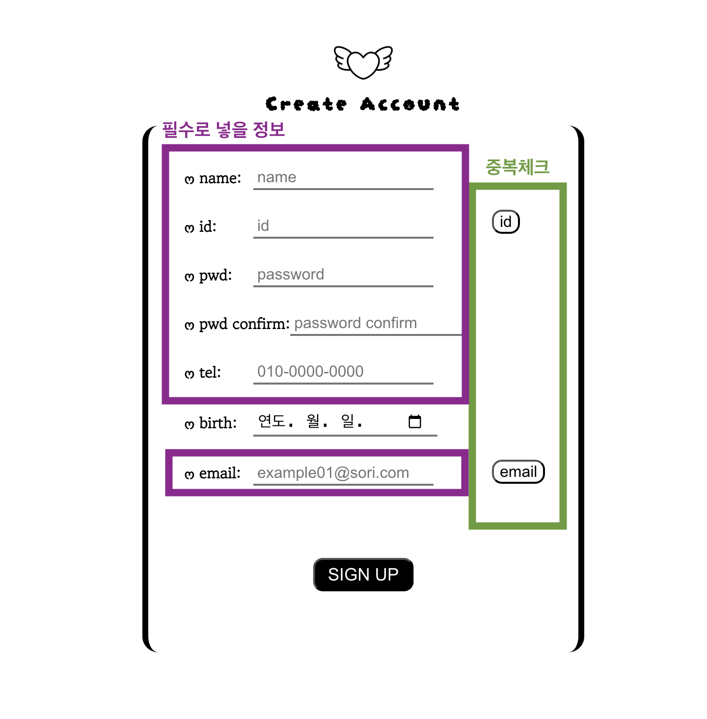 ♠ ์ค๋ณต์ฒดํฌ ๋๋ฌธ์ ์ด๋ฉ์ผ๊ณผ ์์ด๋๋ ๋ค์ ๋ธ๋ก๊ทธ์์ ๋ค๋ฃจ๋๋ก ํ๊ณ ์ฌ๊ธฐ์๋ ์ด๋ฆ, ํจ์ค์๋, ์ ํ๋ฒํธ๋ง ์ฌ๋ฆฌ๊ฒ ์ต๋๋ค. ♠